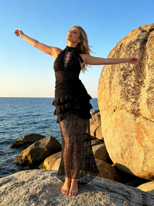 • Off-shoulder ruffle sleeves - delicate drama with soft volume